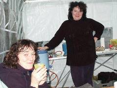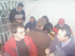 in gemütlicher Runde im warmen Zelt.